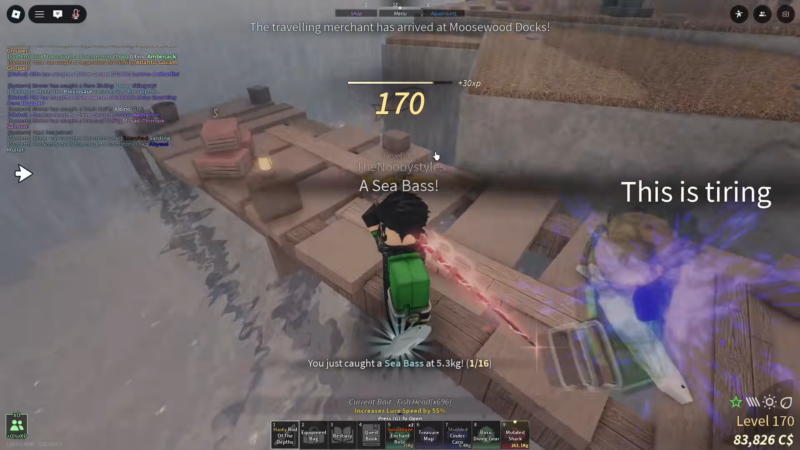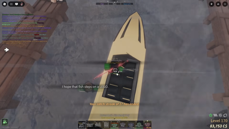 Equip a rod, cast into the water while a boat is out, press Sit, and intentionally fail the catch once.
