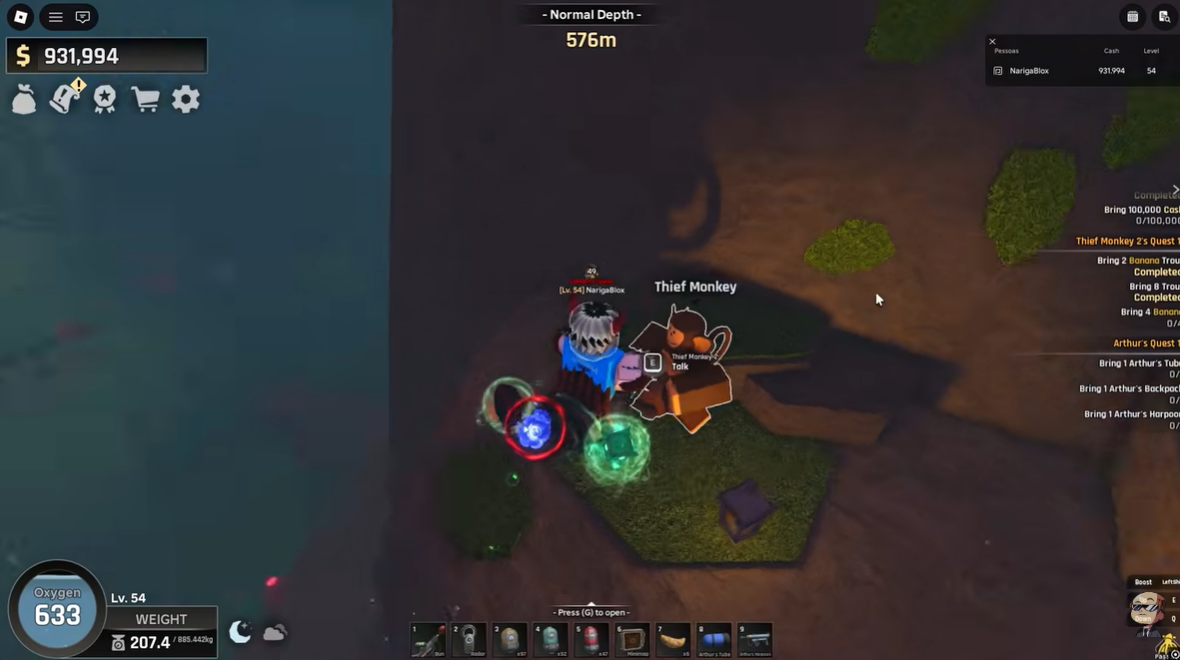 Arthur is a human NPC located in the Jungle Biome. When you speak to him, he asks for three specific items: the Harpoon, the Backpack, and the Tube. These items are not found randomly in your inventory; they are obtained by completing tasks for different monkey NPCs scattered around the jungle.