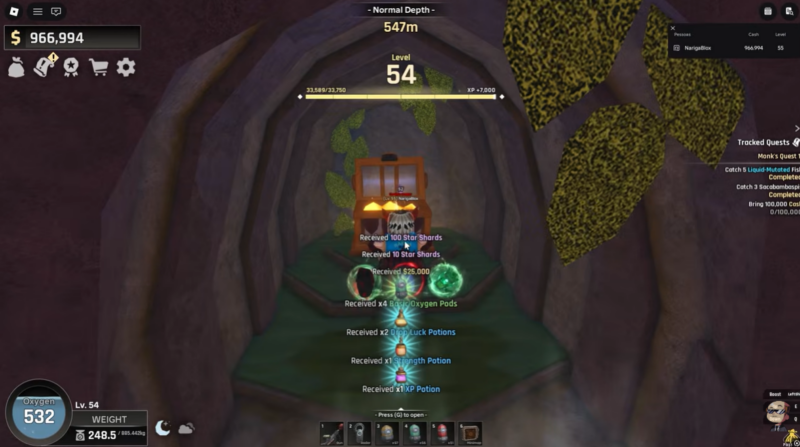 Although the grind involves legendary fish farming, RNG-based Banana drops, weather timing, and a large cash investment, the overall progression value is strong. You gain immediate currency from the chest and long-term combat and farming efficiency from the artifact.
