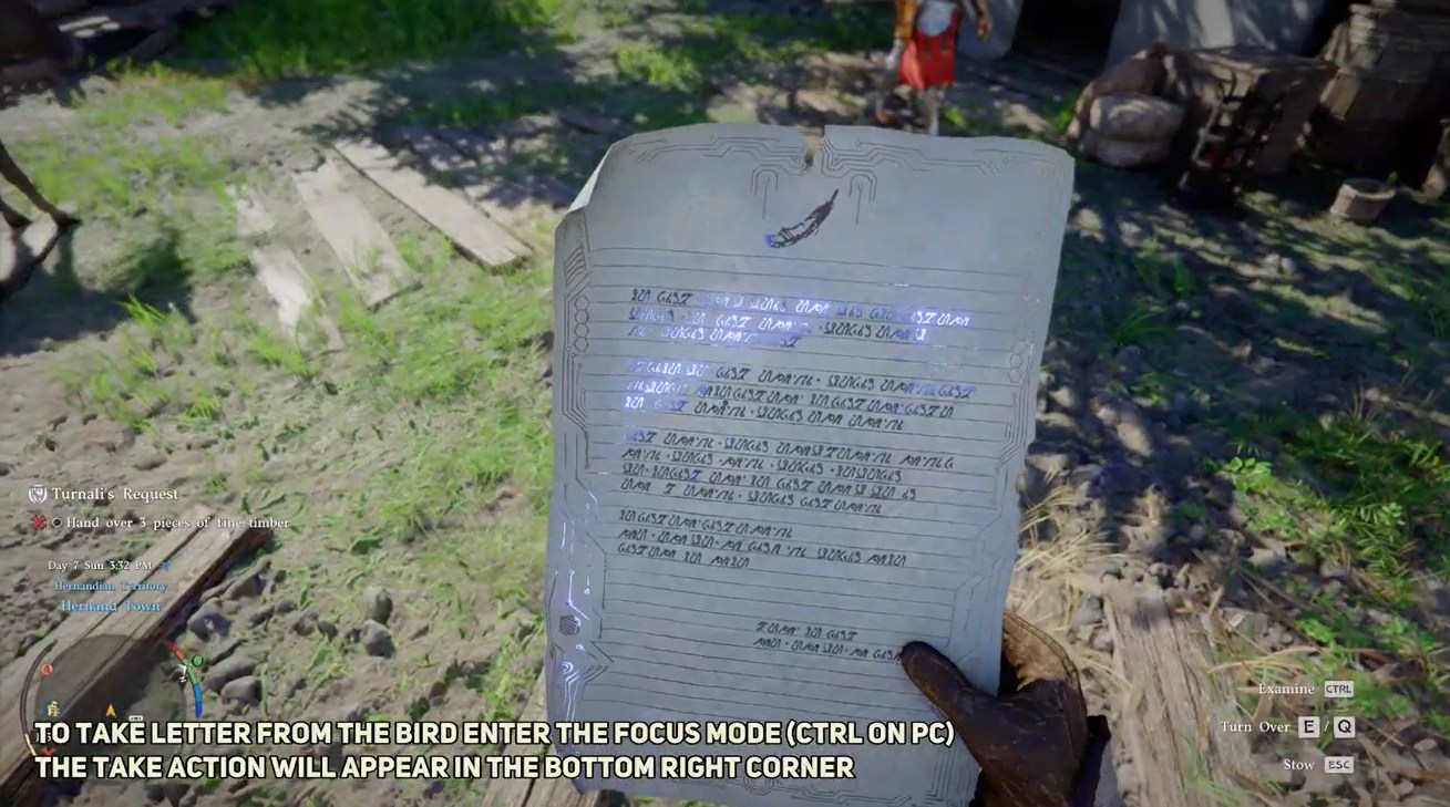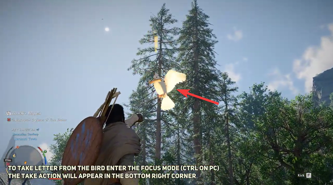 After interacting, the crow hands over the letter seamlessly. You won’t see a cutscene—just a quick interaction confirming the transfer.