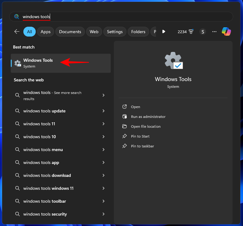 - Firstly, search for Windows Tools in Start and open it.