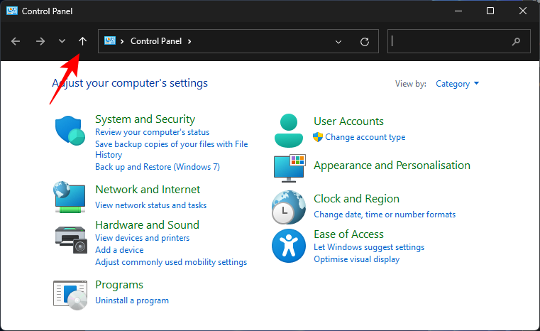 - All you need to do is open Control Panel and then click on the up arrow button.