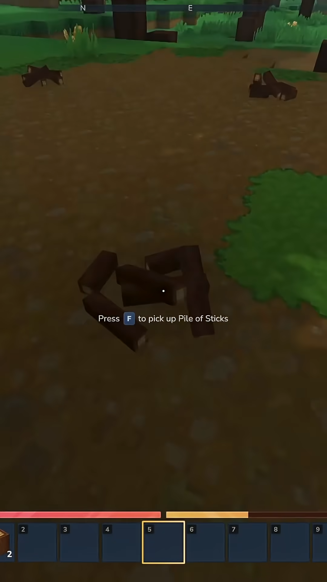 The secret to gathering wood rapidly lies in crafting a tool early on. Instead of wasting time punching individual logs, explore your immediate surroundings to pick up plant fibers, stone rubbles, and sticks.