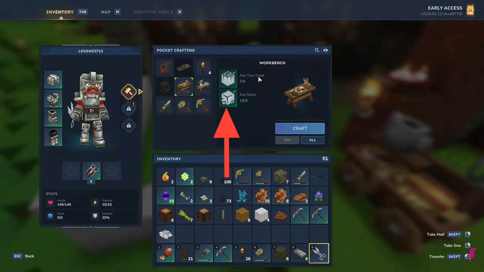 Open your crafting menu by pressing Tab on your keyboard.