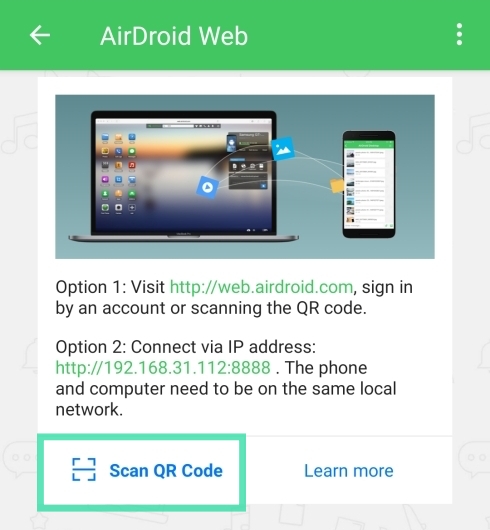 Using AirDroid app