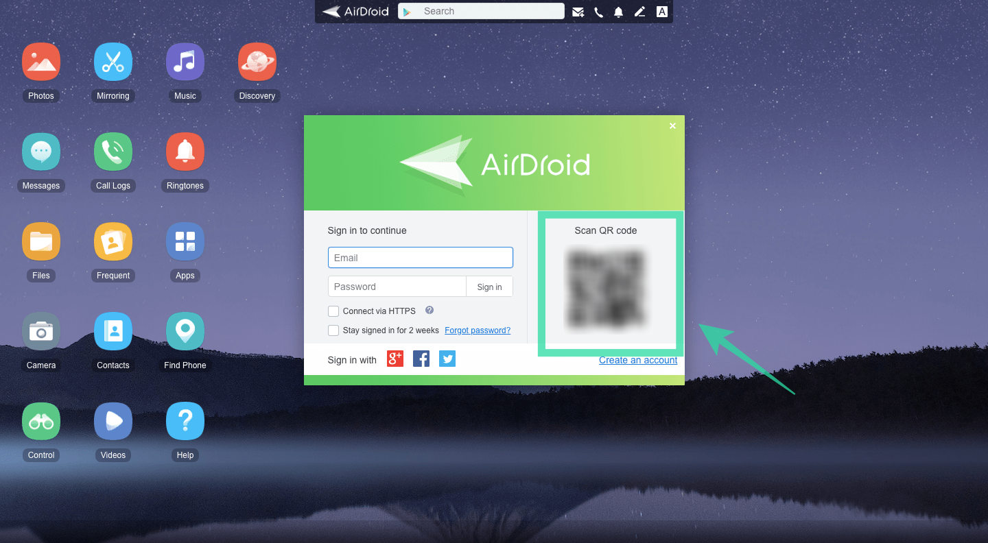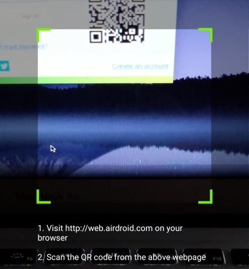 When the AirDroid site loads up, a QR code will be generated. This needs to be scanned by your phone.