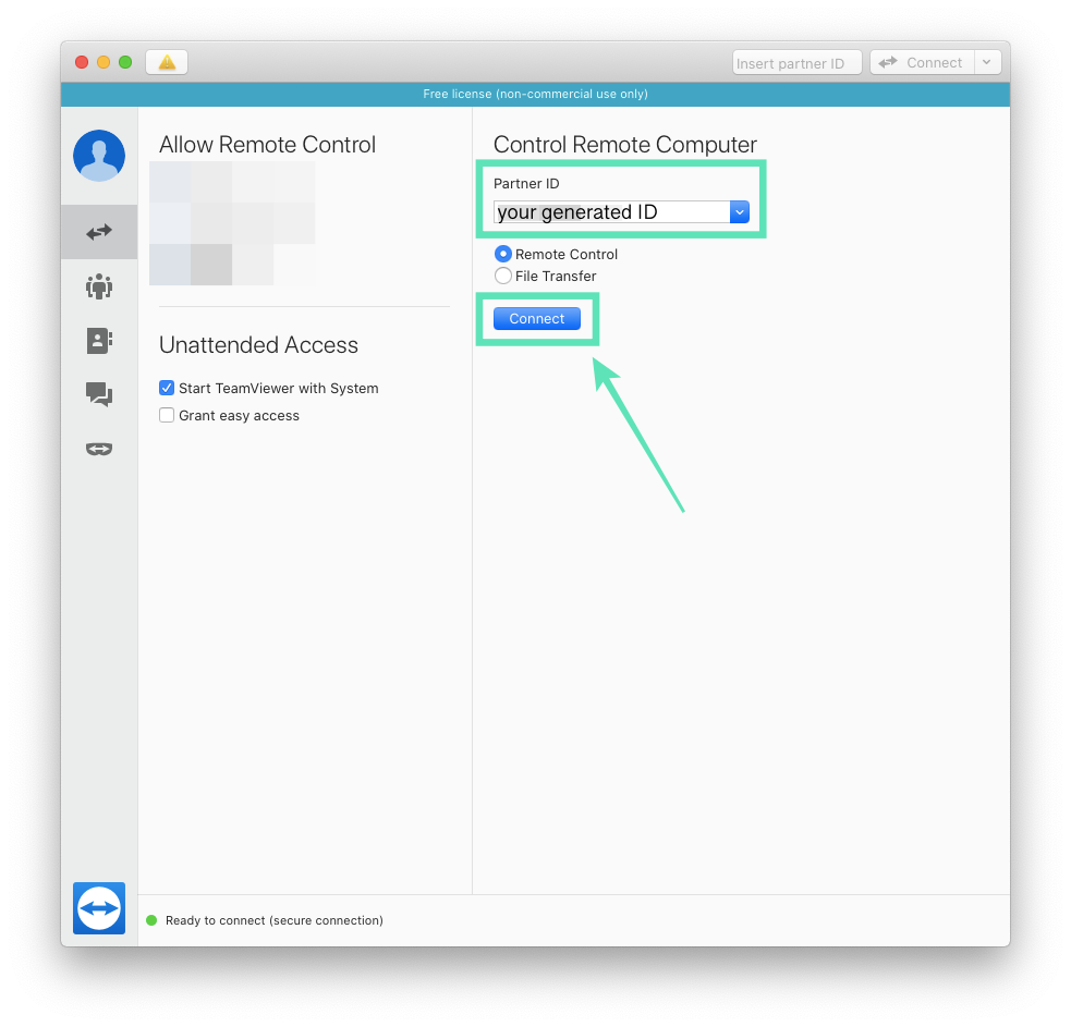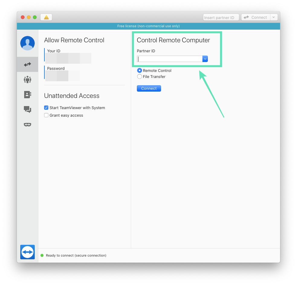 Step 3 (On PC): On the TeamViewer app on PC, enter the ID that was generated on your mobile device inside the ‘Partner ID’ under the Control Remote section.
