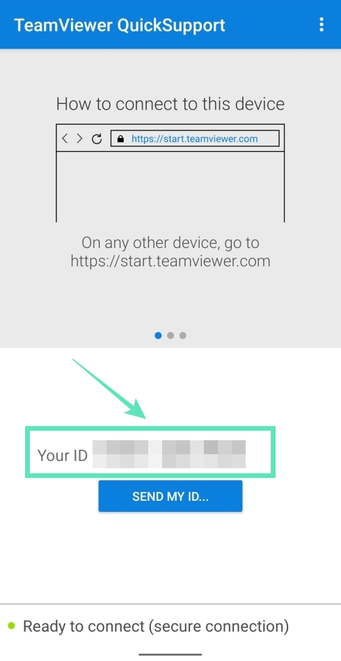 Step 2: After opening the app and swiping across intro pages, the TeamViewer app will generate an ID so you may use it to remotely access the device’s screen on your PC. Note down this ID.