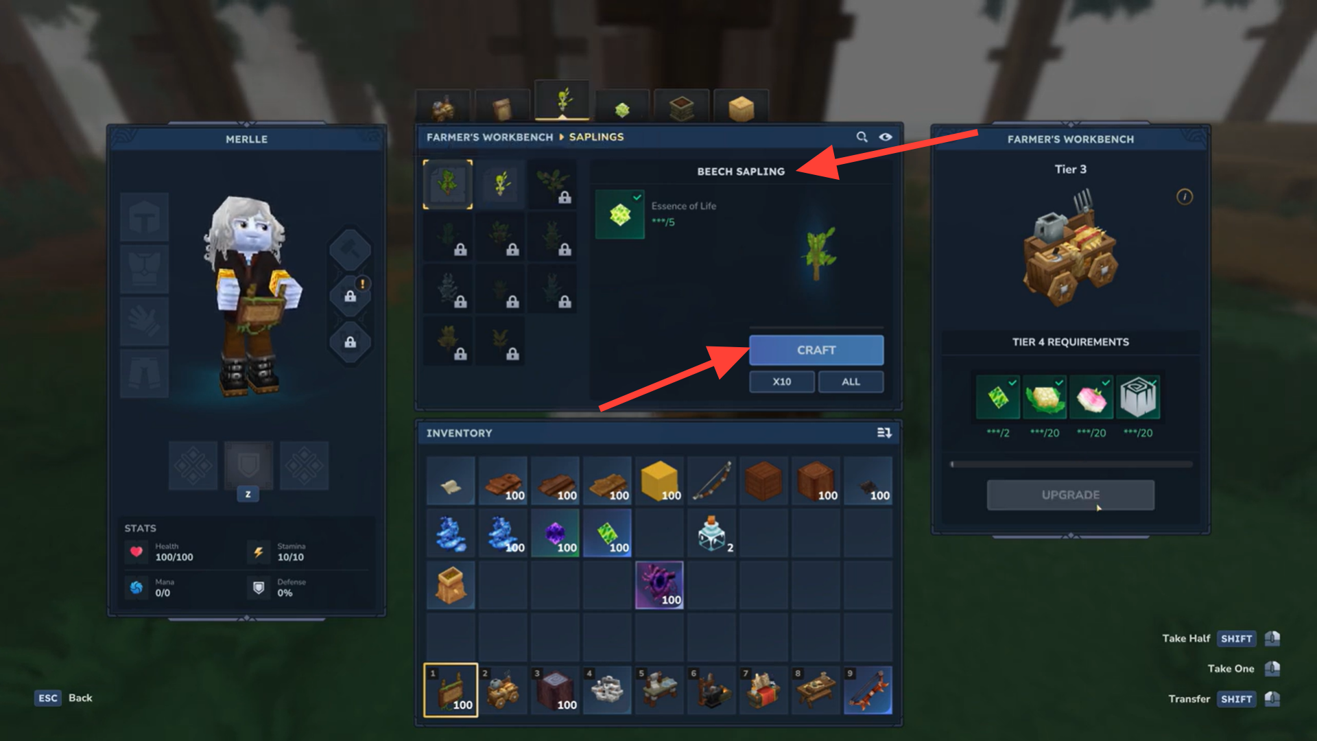- Select the sapling type you want and craft it using Essence of Life.