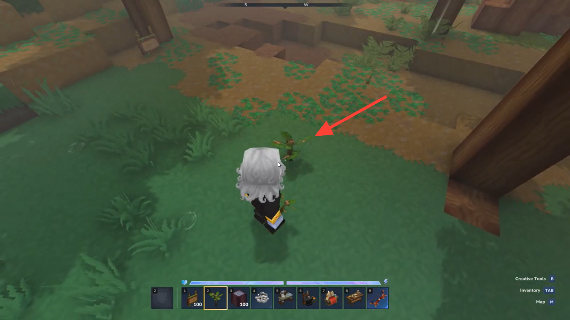 - Place the sapling in your hotbar and select it.