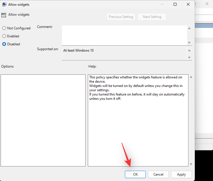 Now close the Group Policy Editor and restart your PC. Widgets will now be disabled on your system once it restarts.