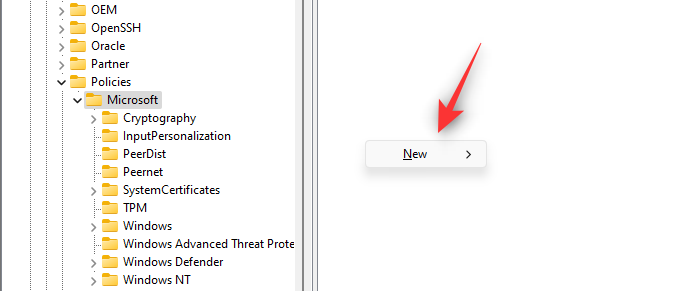 With Microsoft selected on your left, right-click an empty area and select New.