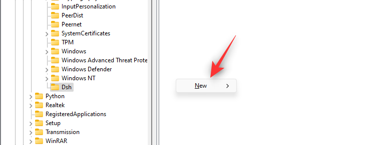 Right-click an empty area again with Dsh selected and select New.
