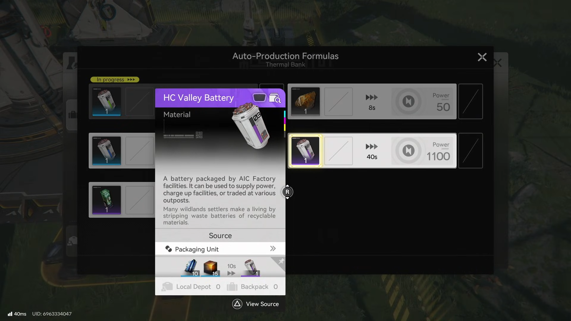 Step 6: Pick the fuel item by checking each bank’s recipe/production list