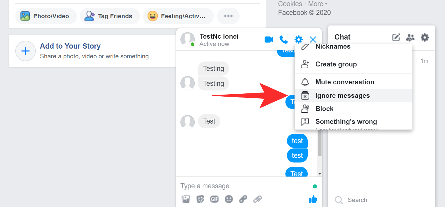 Open ‘Facebook.com’ and navigate to the chat you wish to ignore in the bottom right corner of your screen.