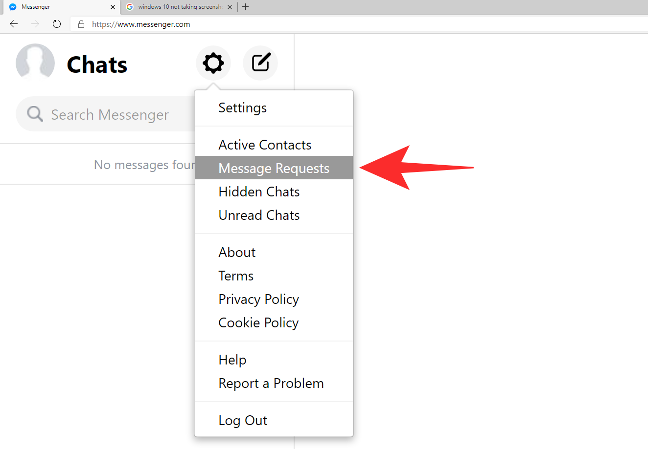 Visit ‘Messenger.com’ and login to your account. Once logged in, click on the ‘Gear’ icon at the top of your left sidebar.