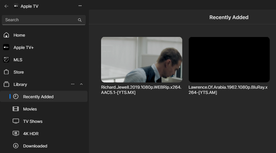 - In the Apple TV app, click on the three-dot icon in the sidebar, select ‘Add files/folder to library‘, and select your video files to import them. Files are synced and accessible on all devices with the Apple TV app.