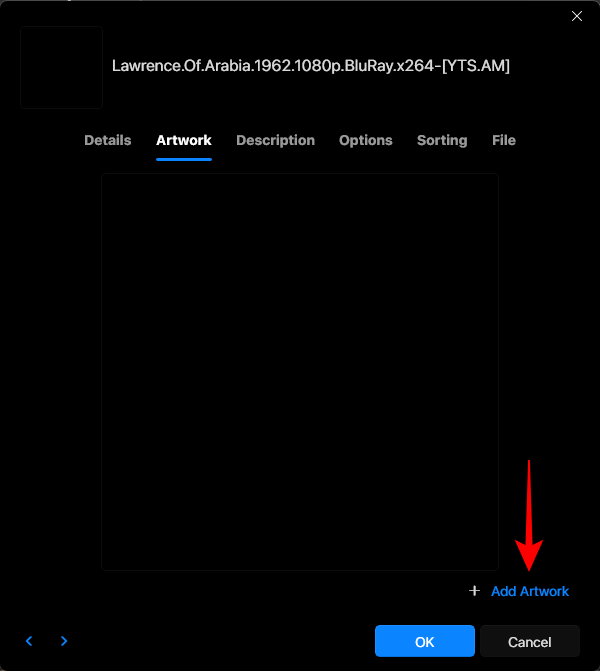 Move to the Artwork tab. Then click on the Add Artwork option in the bottom right corner.