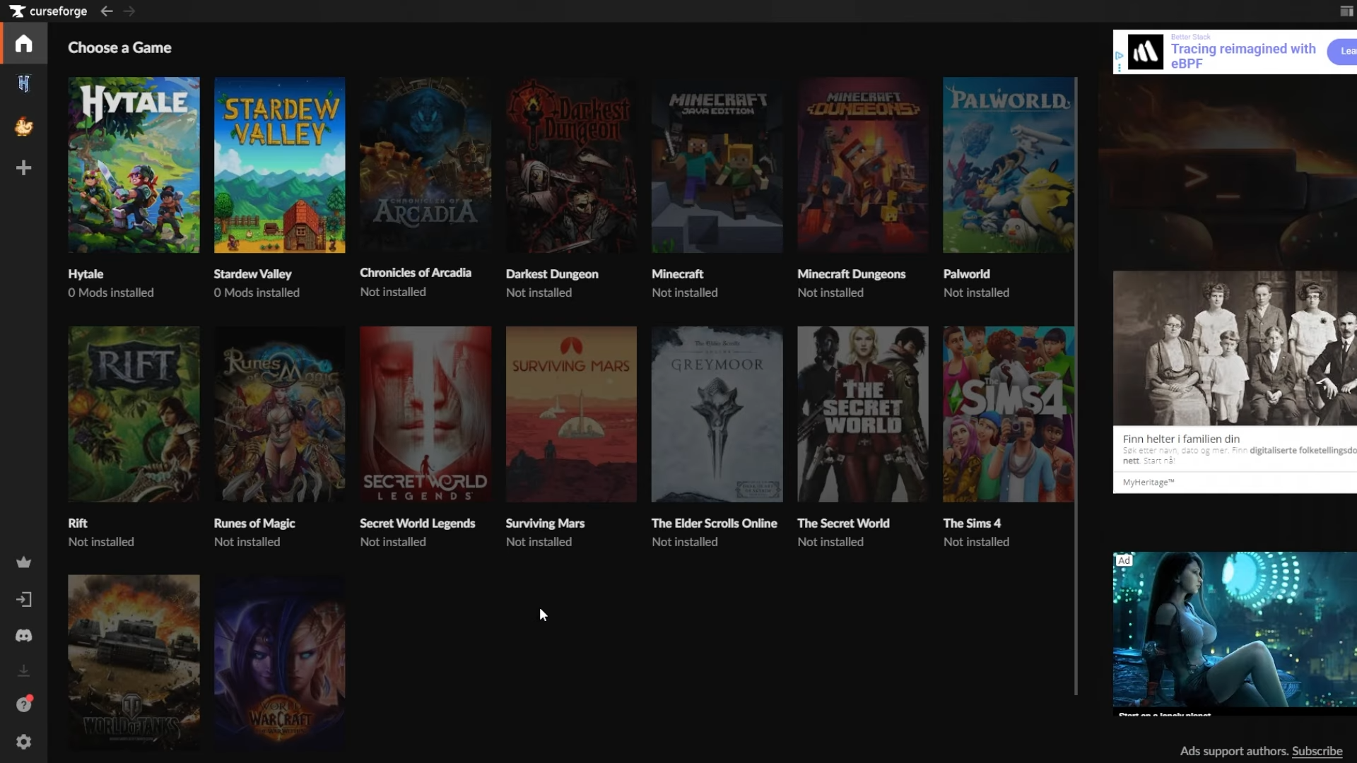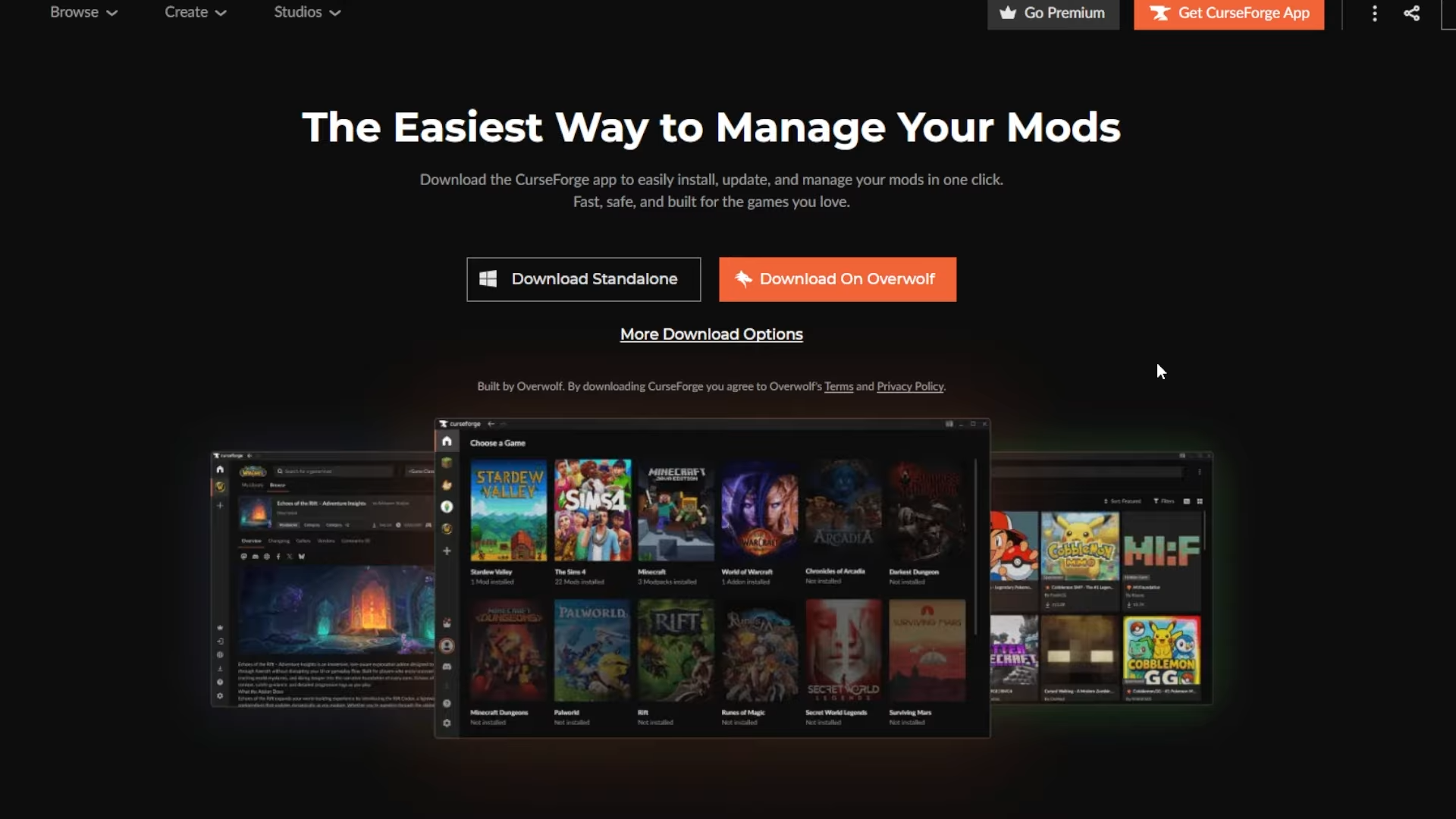 - Download: Go to curseforge.com and download the launcher for Overwolf.