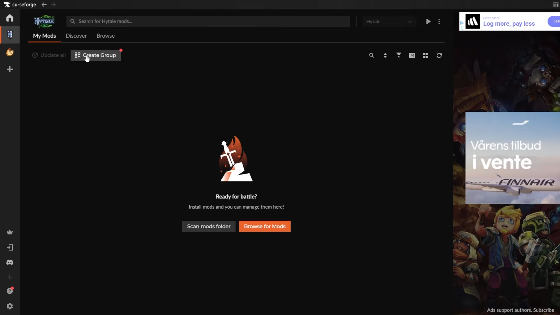 CurseForge automatically detects your Hytale installation, making the modding process seamless:
