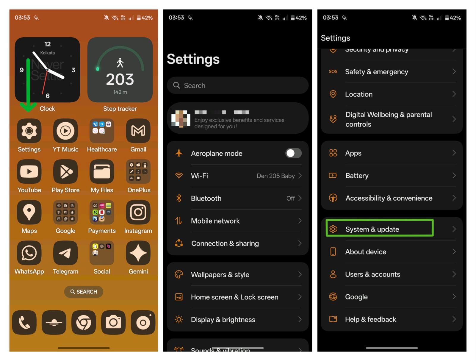 - Scroll down and tap on System & update.