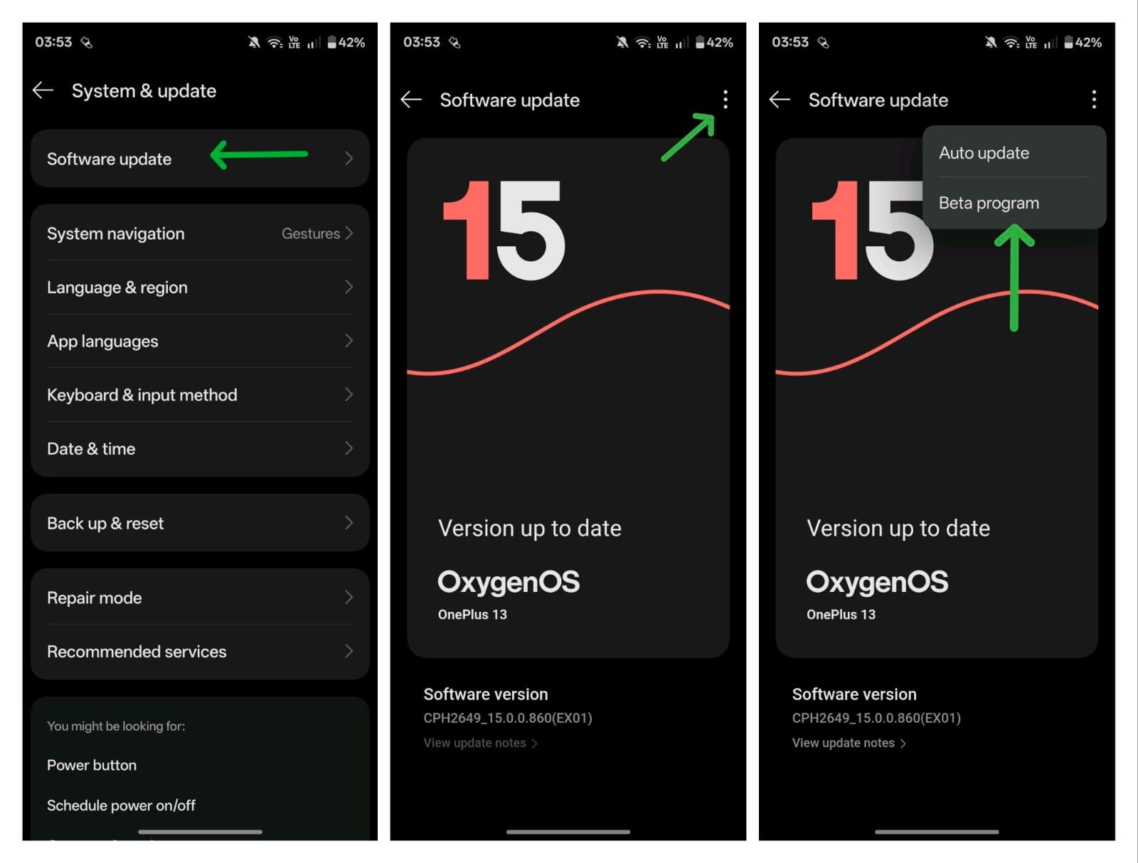 - OnePlus 13 (CPH2649): 15.0.0.860