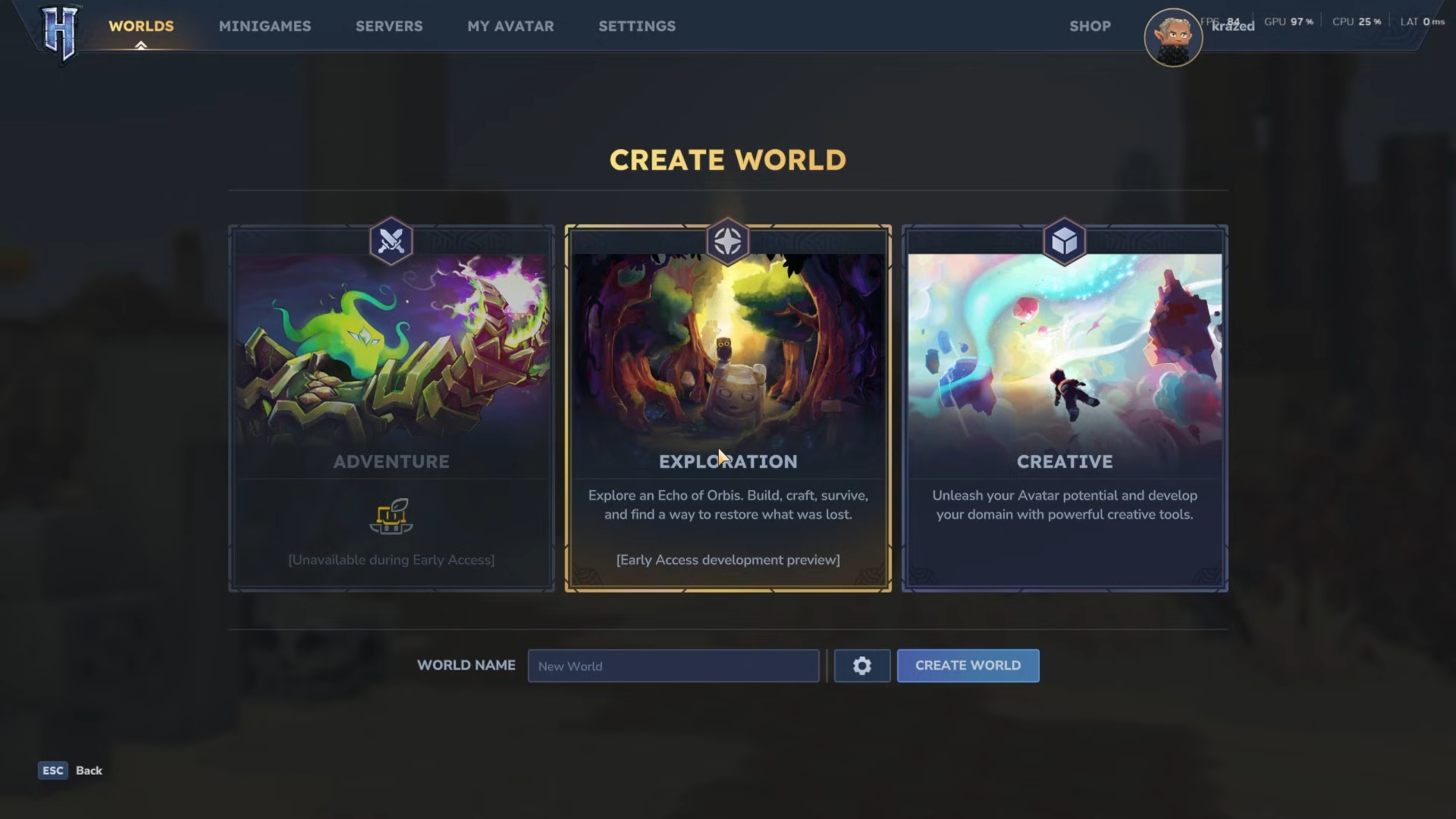 From the main menu, select Worlds, then Create New World. Choose Exploration and name your world.