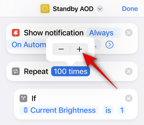 Tap on 100 times beside Repeat. Tap and hold on the icon. This shortcut relies on repeating the cycle where StandBy checks for your attention. Thus, we need to increase this number to something along the lines of 500 or more so the cycle continues while StandBy is active on your iPhone.