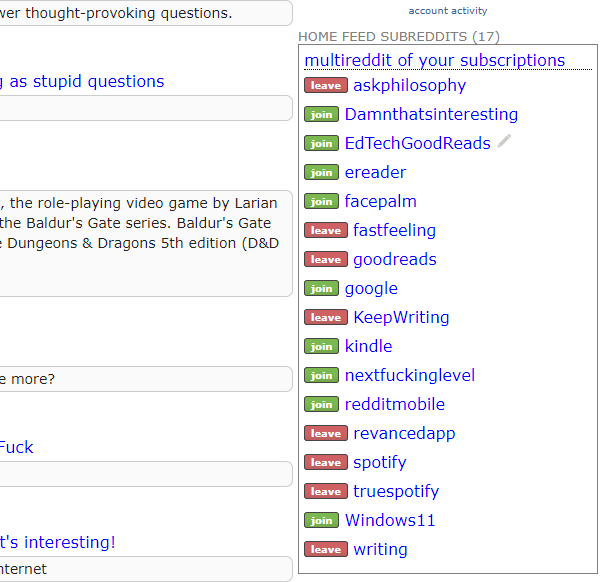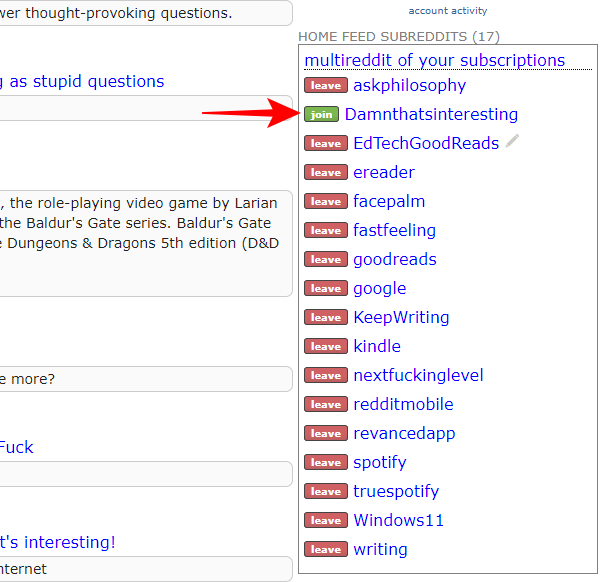 Note: Don’t refresh the page if you want to rejoin as you’ll lose the list of subreddits you’ve left.