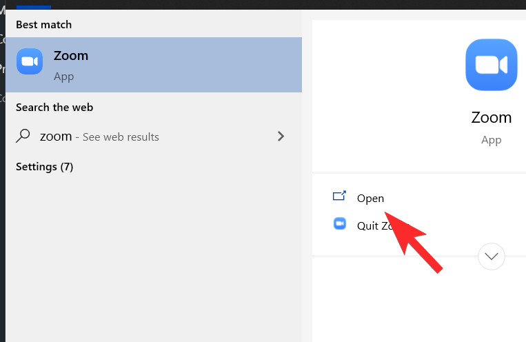 Or, launch the Zoom application directly from the Start Menu.