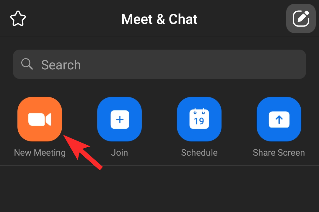 Open the Zoom app on your phone. If you don’t have it, download and install it from the Play Store or App Store, depending on your device. Once you’ve opened the app, select the New Meeting option.