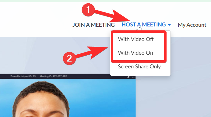 Zoom has a desktop application that you can access one of two ways. Either you go to the Zoom website via a browser, where you can launch the application by clicking on Host a meeting > With Video On/Off