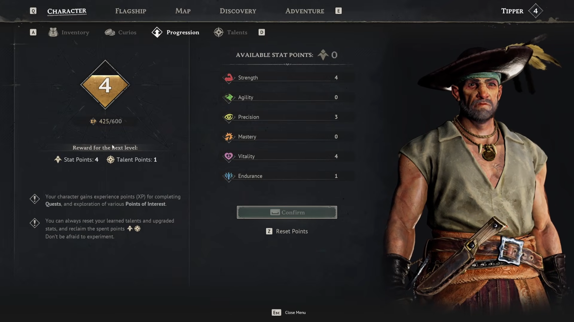Windrose ties character levels directly to smart exploration rather than endless combat grinding. You gain XP primarily from fully clearing POIs and completing quests, allowing you to allocate points into stats like Strength or Vitality and talents in branches like Fencer or Crusher.