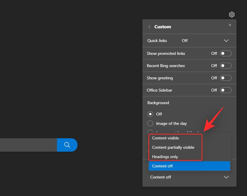 - Content visible: Content will be visible on your new tab page and will occupy most of the screen space.