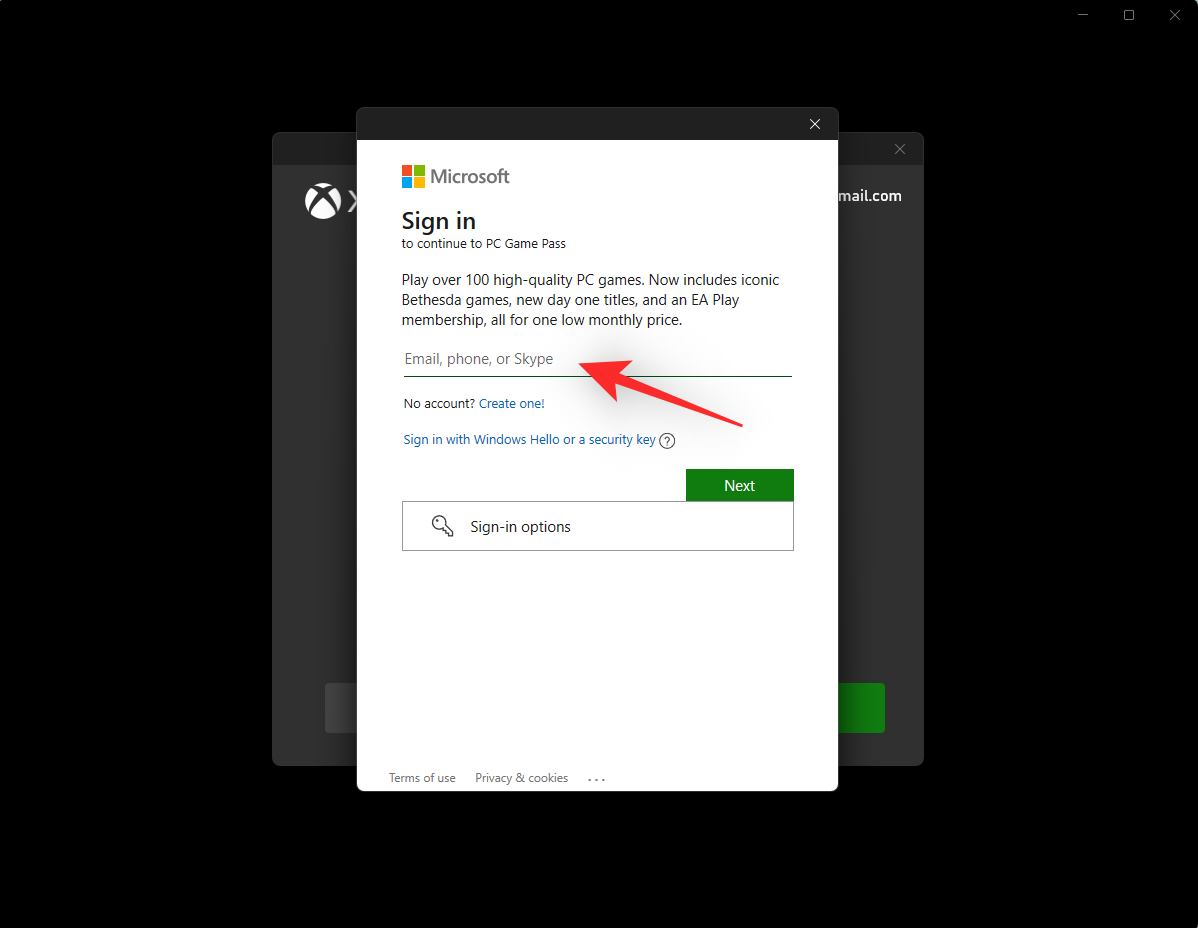 You will now be prompted to sign in to your Xbox account. Click Microsoft account.