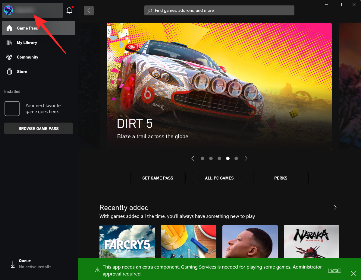 Once signed in, you will be taken to the Xbox app homepage. Verify that you’re signed in with the correct account by checking for the current account in the top left corner.
