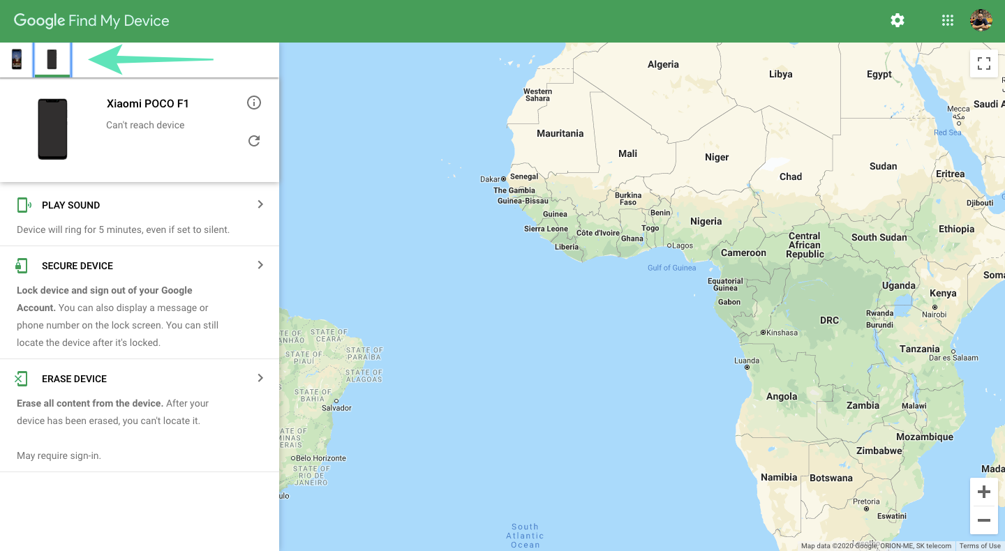Step 4: Select the device you want to track from the options given to you. If only one of your device is logged in to an account, you will be taken to its Find My Device page.