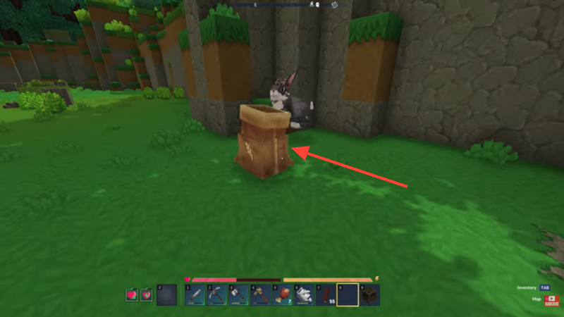 - Place a lure/feed bag on the ground near the animal you want to tame, such as a rabbit.