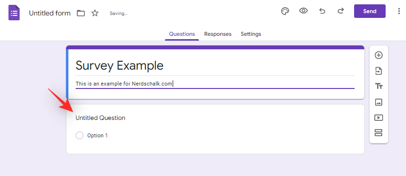 You can now use the sidebar and finish creating the survey. Once done, use the ‘Send’ option in the top right corner to share it with your audience.