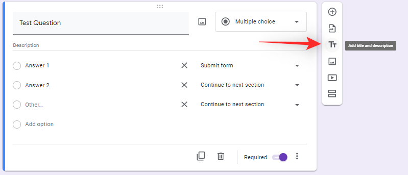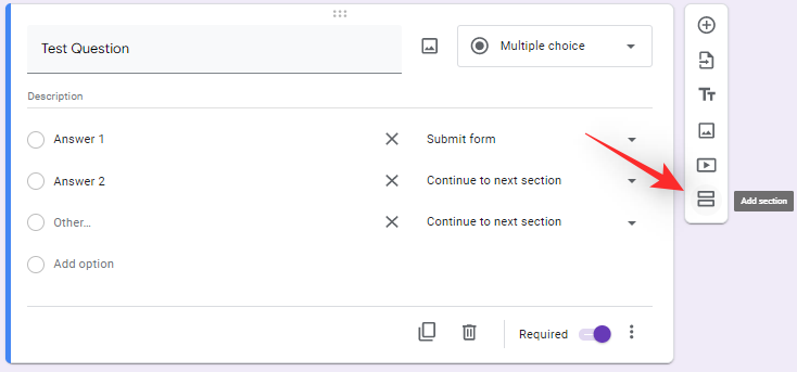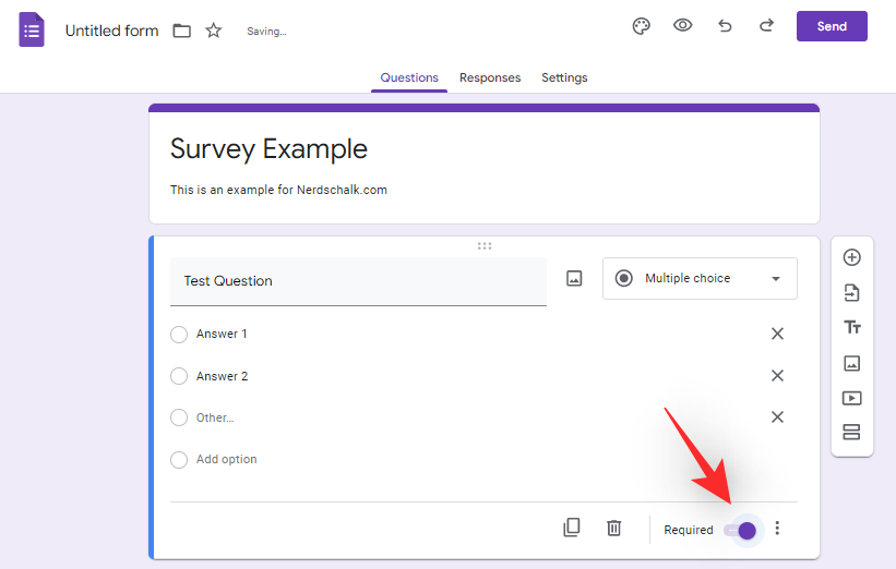 Additionally, turn on the toggle for ‘Required’ at the bottom if you wish to make the question mandatory.