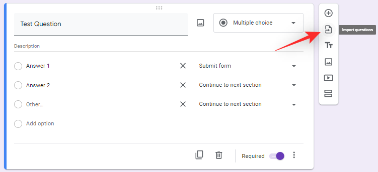 • File icon: Import questions to your survey from another Google Form.