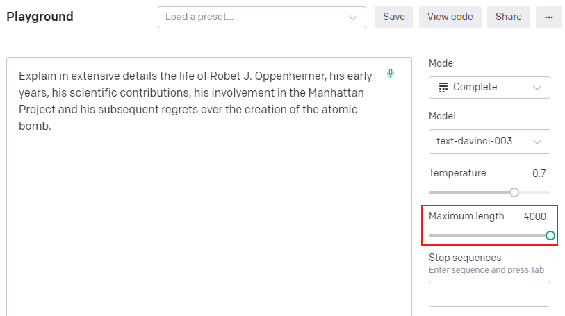 The ChatGPT interface is designed to be simple and basic enough to serve the needs of most general users. But there is an another interface called ChatGPT playground, still free, where you can change a few settings and maximize ChatGPT’s output.