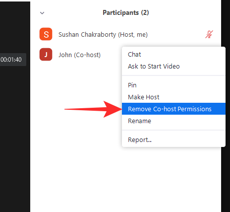 Finally, click on ‘Remove co-host permission’ to dismiss them for good.