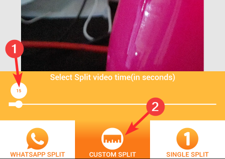 First, set the splitter to 15 seconds by moving the slider to 15 and then tap on the CUSTOM SPLIT option.