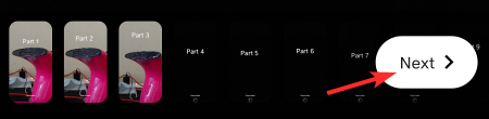 Once in the gallery, select all the 15-second split videos that you want to upload. Remember that you won’t be able to select more than 10.