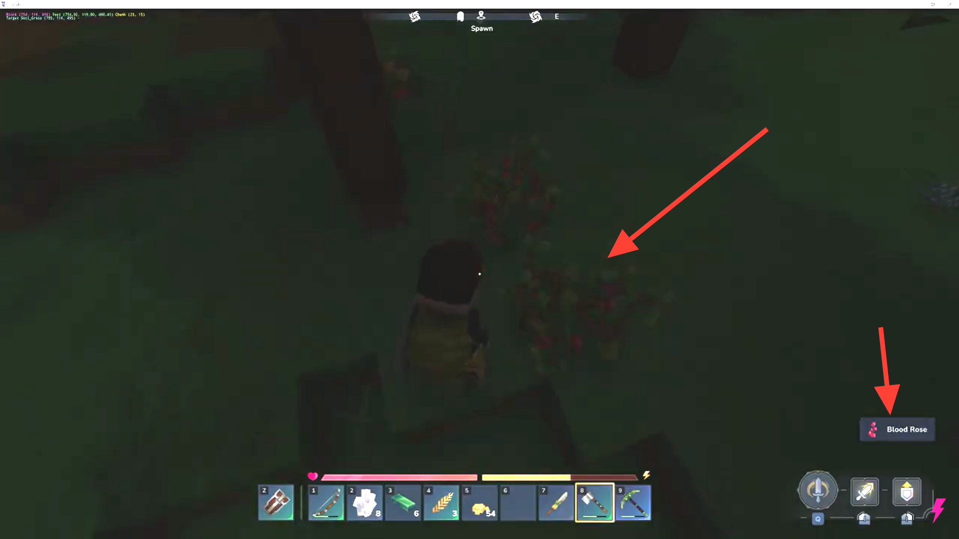 Blood Roses spawn commonly at nighttime, especially around early-game areas. They are much easier to spot in the dark due to their glow and color contrast.