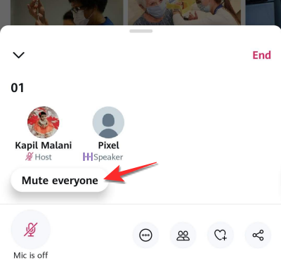 The mute everyone button will be present under the audience list. Tap the mute everyone button to mute every single person in the Space.