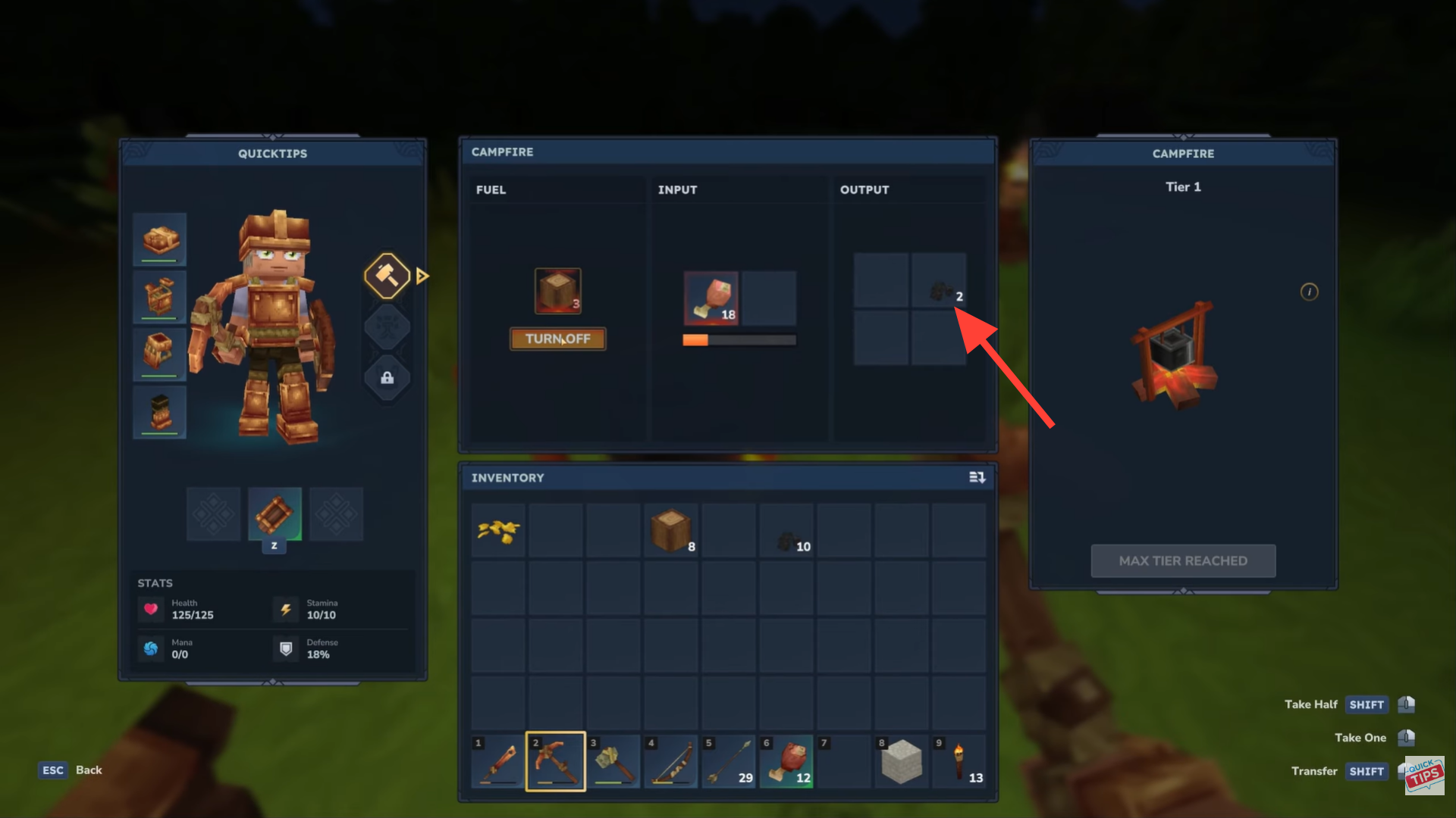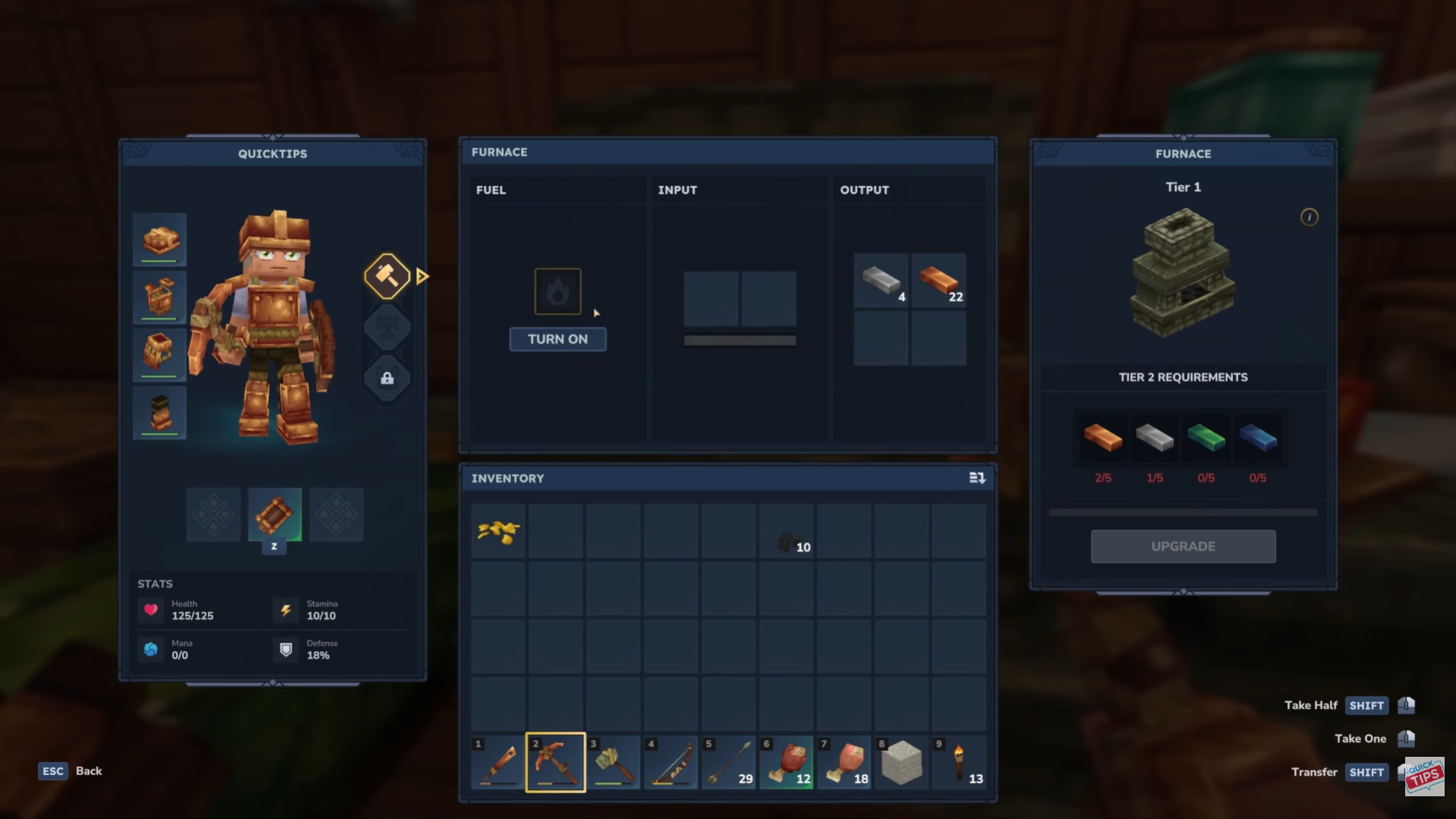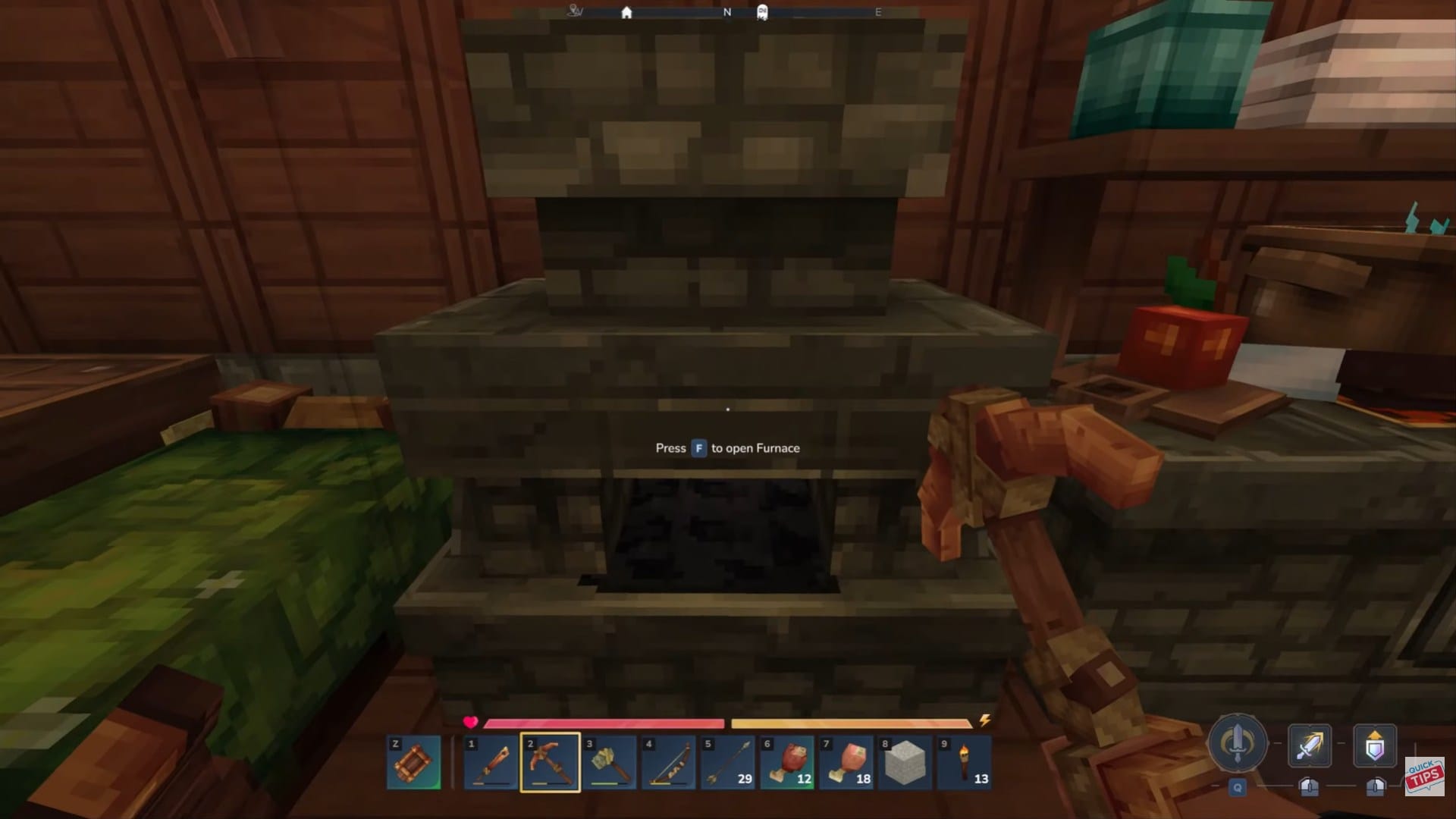 Set up a furnace at your base. This is usually done early for ore smelting and metal progression.