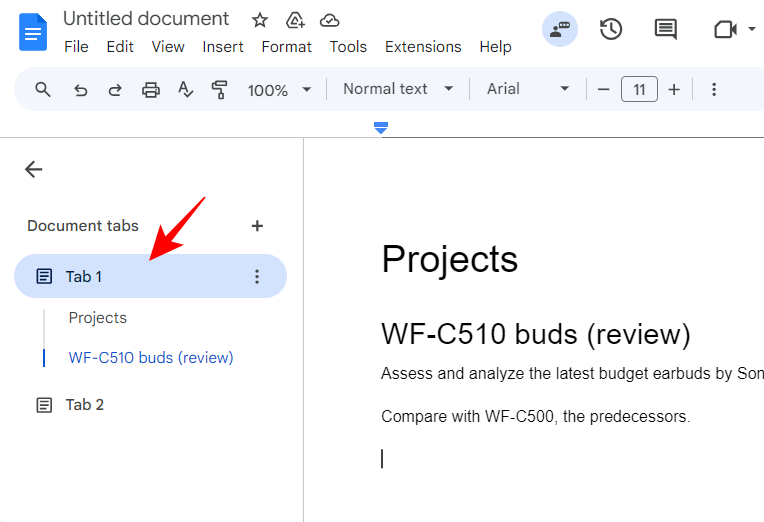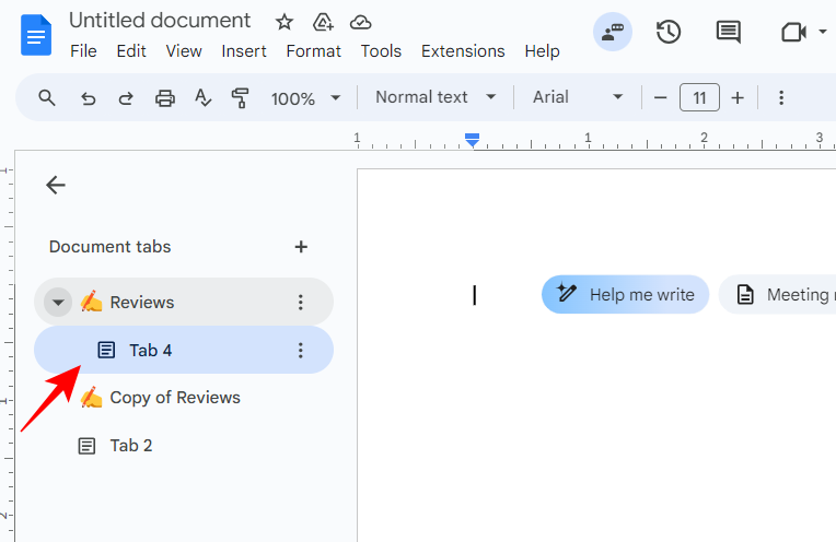 Every new document in Google Docs has a default tab that can’t be deleted unless there’s another tab present.