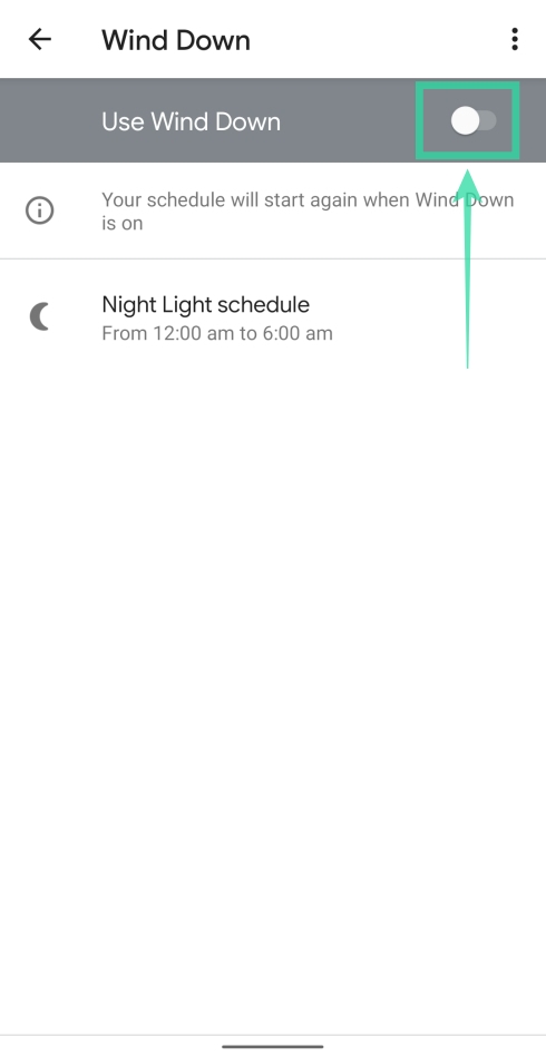 4. Toggle the switch adjacent to Use Wind Down to ON.